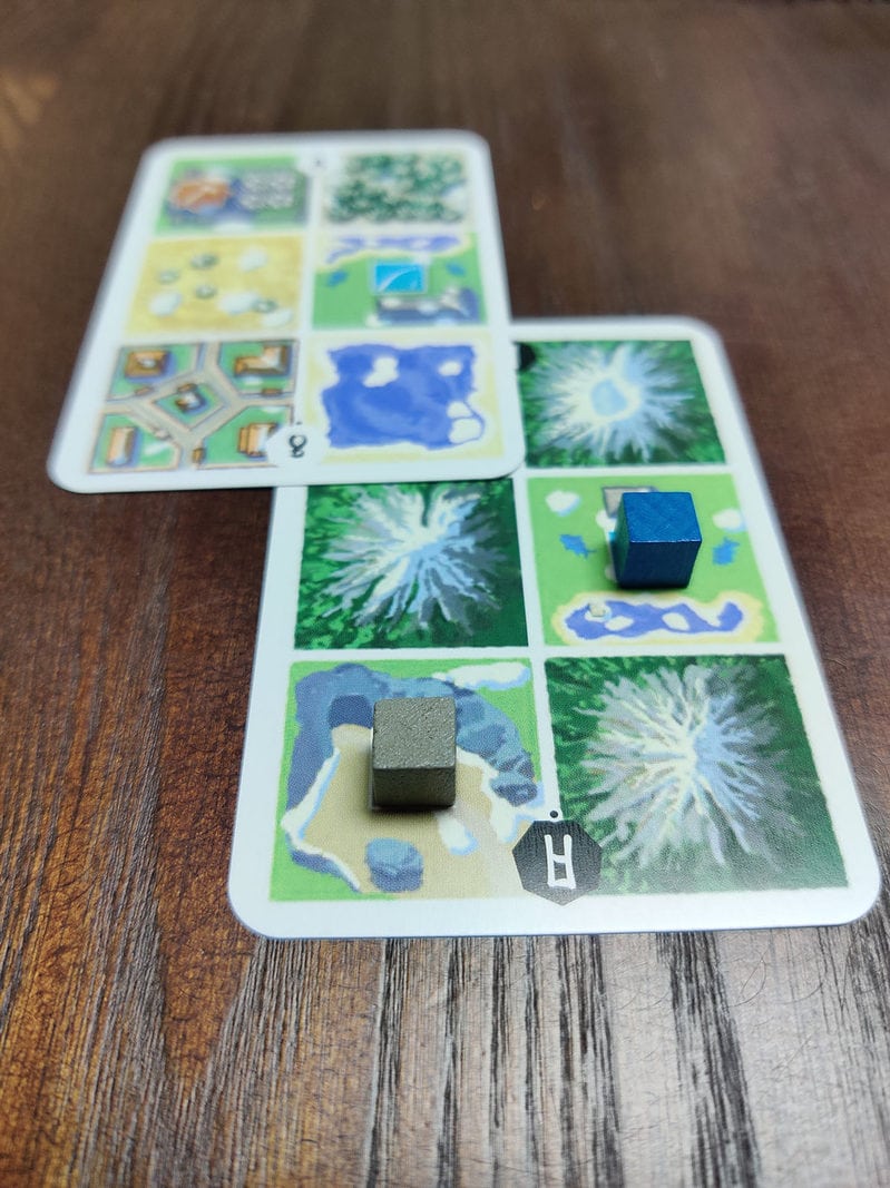 Kaupungit tykkäävät olla vierekkäin, mutta vain yksi niistä pisteytyy. Vesialueista hyötyy vain jos niitä on vähintään kaksi vierekkäin. Resurssit vaativat tuotantolaitoksen tuottaakseen pisteitä. Vuoret aiheuttavat kamalaa päänvaivaa, sillä omalla kartalla voi olla vain yksi yhtenäinen vuorijono.